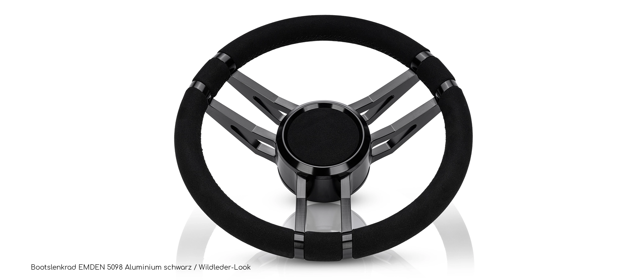 MÖWE MARINE PERFORMANCEBootslenkrad Emden Wildleder Look / Aluminium schwarz Das Modell EMDEN ist die Innovation in unserer neuen Performance Linie. Mit diesem massiv und aufwendig CNC-gefertigtem Bootslenkrad spielen Sie in einer anderen Liga. Eine Erscheinung und Haptik, die bisher Powerbooten und Yachten der Oberklasse vorbehalten war, jetzt bei Möwe Marine zu einem sensationellen Preis-Leistungsverhältnis. Life is too short - gönnen Sie sich ein Stück Luxus! griffiges Bootslenkrad aus Aluminium im Wildleder-Look, sportlich und edel zugleich Neuheit: aufwendiges Design, CNC gefertigt im 6-Achsen-Verfahren neues Design von Möwe Marine - Symetrie aus 12mm Doppelstegen, robust in Aluminium gefertigt massive Qualität und äusserst stabile Ausführung / 100% CNC mit hohem Materialaufwand - ohne Kompromisse zentrale Abdeckung als Stecksystem ausgeführt - keine sichtbaren Schrauben integrierter, sehr fein verzahnter, Adapter zur optimalen Ausrichtung passend für alle Teleflex / Ultraflexlenkungen mit Standardkonus und Passfeder Aluminium schwarz, Wildleder-Look schwarz Lenkraddurchmesser: 350mm Lenkradhöhe: 85mm Gewicht 2,5kg Montage möglich bei folgenden Bootsmodellen / -herstellern: Bayliner, Maxum, Sealine, Sea Ray, Regal, Sunseeker, Glastron, Larson, Nidelv, Rinker uvm. Was ist MattLederMattLeder ist ein hochwertiges, synthetisches Kunstleder, welches durch seine Ähnlichkeit zu Wildleder besticht. Die sehr angenehmen Eigenschaften in der Haptik und der optischen Erscheinung, gelingen durch eine spezielle Mischung von Polyester und Polyurethan.MattLeder bietet eine Vielzahl von herausragenden Eigenschaften, die es von anderen Materialien abheben:angenehme Haptik: MattLeder ist leicht angerauht und fühlt sich weich und geschmeidig an, ähnlich wie echtes Wildleder. Es verleiht Ihrem Lenkrad, eine elegante, hochwertige und sportliche Note.