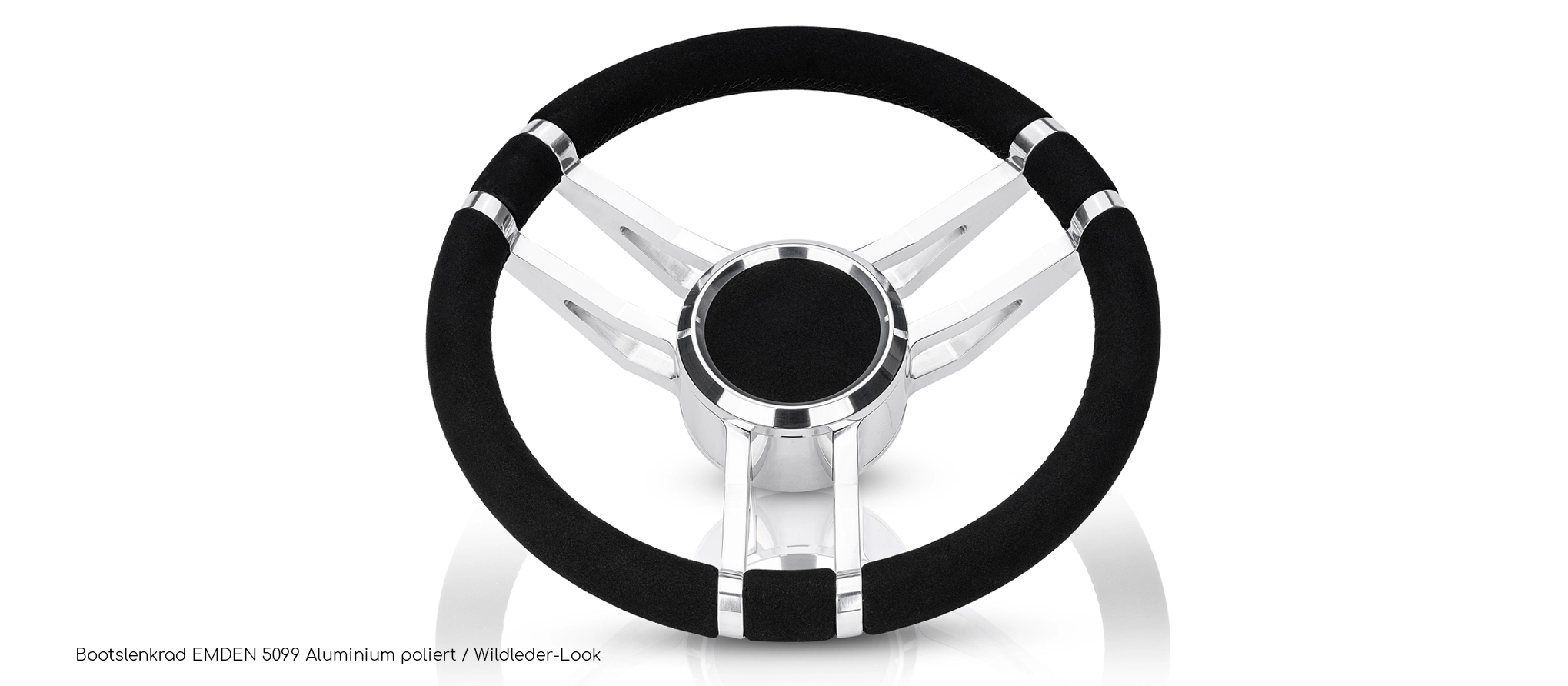 MÖWE MARINE PERFORMANCEBootslenkrad Emden Wildleder Look / Aluminium poliert Das Modell EMDEN ist die Innovation in unserer neuen Performance Linie. Mit diesem massiv und aufwendig CNC-gefertigtem Bootslenkrad spielen Sie in einer anderen Liga. Eine Erscheinung und Haptik, die bisher Powerbooten und Yachten der Oberklasse vorbehalten war, jetzt bei Möwe Marine zu einem sensationellen Preis-Leistungsverhältnis. Life is too short - gönnen Sie sich ein Stück Luxus! griffiges Bootslenkrad aus Aluminium im Wildleder-Look, sportlich und edel zugleich Neuheit: aufwendiges Design, CNC gefertigt im 6-Achsen-Verfahren neues Design von Möwe Marine - Symetrie aus 12mm Doppelstegen, robust in Aluminium gefertigt massive Qualität und äusserst stabile Ausführung / 100% CNC mit hohem Materialaufwand - ohne Kompromisse zentrale Abdeckung als Stecksystem ausgeführt - keine sichtbaren Schrauben integrierter, sehr fein verzahnter, Adapter zur optimalen Ausrichtung passend für alle Teleflex / Ultraflexlenkungen mit Standardkonus und Passfeder Aluminium poliert, Wildleder-Look schwarz Lenkraddurchmesser: 350mm Lenkradhöhe: 85mm Gewicht 2,5kg Montage möglich bei folgenden Bootsmodellen / -herstellern: Bayliner, Maxum, Sealine, Sea Ray, Regal, Sunseeker, Glastron, Larson, Nidelv, Rinker uvm. Was ist MattLederMattLeder ist ein hochwertiges, synthetisches Kunstleder, welches durch seine Ähnlichkeit zu Wildleder besticht. Die sehr angenehmen Eigenschaften in der Haptik und der optischen Erscheinung, gelingen durch eine spezielle Mischung von Polyester und Polyurethan.MattLeder bietet eine Vielzahl von herausragenden Eigenschaften, die es von anderen Materialien abheben:angenehme Haptik: MattLeder ist leicht angerauht und fühlt sich weich und geschmeidig an, ähnlich wie echtes Wildleder. Es verleiht Ihrem Lenkrad, eine elegante, hochwertige und sportliche Note.